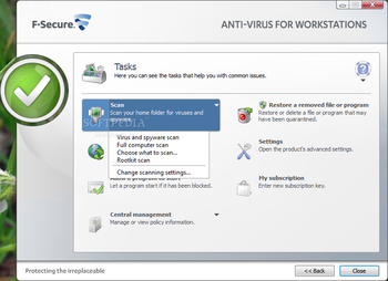 F-Secure Anti-Virus for Workstations protects both site-based and remote workers ensuring maximum system availability and data integrity. F-Secure Anti-Virus for Workstations can be installed, configured and managed by F-Secure Policy Manager.