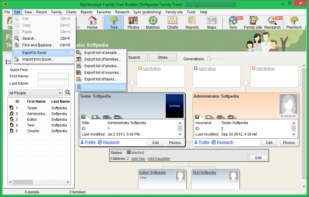 Family Tree Builder is a demo software by MyHeritage Ltd and works on Windows 10, Windows 8.1, Windows 8, Windows 7, Windows 2012.