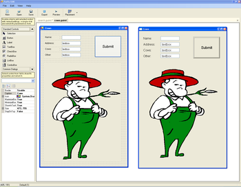 The program was built to be as point and click as possible, trying to avoid wxs sizers completly. This means that controls can go anywhere, and you have the freedom to play with the GUI however you want.