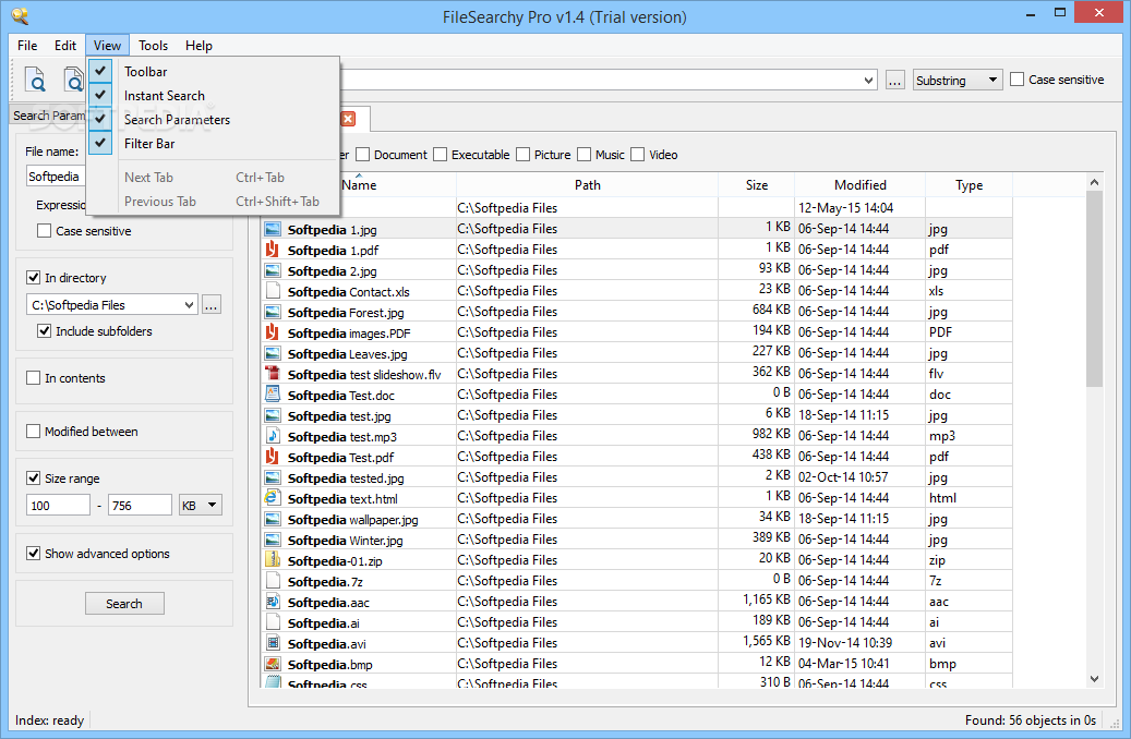 In addition, FileSearchy Pro enables you to create several search threads, each in its own distinct tabs, so you do not need to erase the results of a thread whenever you want to start a new one.