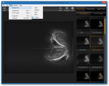 It's wrapped in a modern and approachable interface, which changes once you selected the desired picture. It brings three distinct tabs, namely, film noirs, dark room, and light paint, located on the right side of the window, Unfortunately, the black themed approach is hard to see and may frustrate those with poor vision.