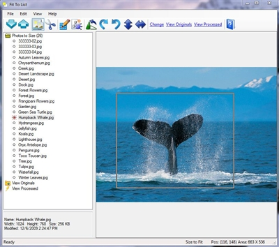 Fit To List makes it easy to crop, resize, and watermark large numbers of photos in minimal time. It establishes a basic workflow to minimize your mouse clicks. You can resize and watermark an entire folder of photos automatically. Your original images are preserved so there is no worry about mistakes. Use Fit To List to optimize your camera or scanner images for use on websites, photo albums, and emails. Fit To List is perfect for eBay users listing dozens of items. It converts gifs, pngs, and other image formats to jpg. You can add captions to your images. It rotates, flips, and reverses images. A fine adjust lets you level images. Fit to list remembers your settings between uses to minimize setup time. The drag and drop interface helps you quickly process the photos you want.