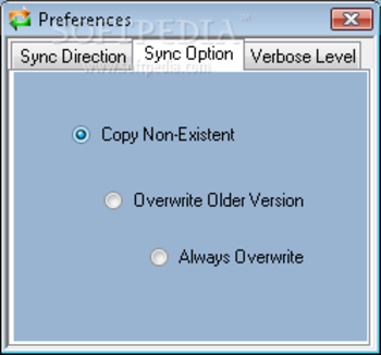 Syncronizing options also include to Copy non-existent file, overwrite older version of a file or always overwrite destination.