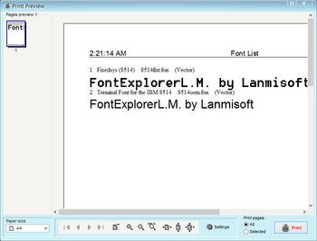 With FontExplorerL.M., you may easily manage all the fonts installed or stored on your computer, organize them in dedicated folders, as well as integrate them with your text editors. You may write full texts in Arabic, Chinese, OEM/DOS or custom alphabets, then preview them as HTML content or as a printed page.