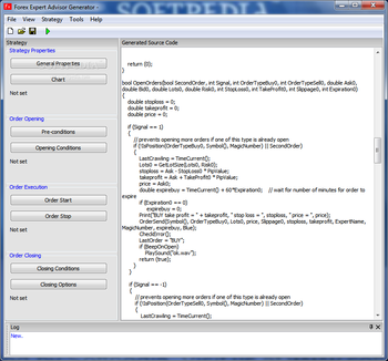 This generator creates Expert Advisor with those common components for trading Forex markets. All you have to do is compile the exported MQ4 source code and your Expert Advisor will be ready.Limitations in the unregistered version15-day trial
