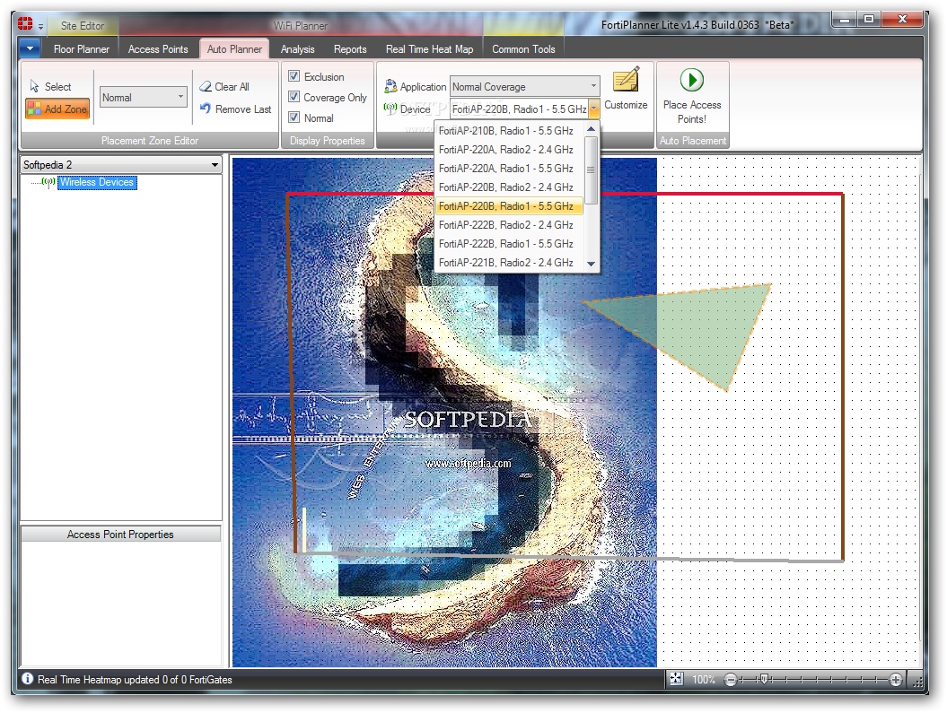 FortiPlanner is a handy and reliable application which allows you to analyze the wireless network coverage.