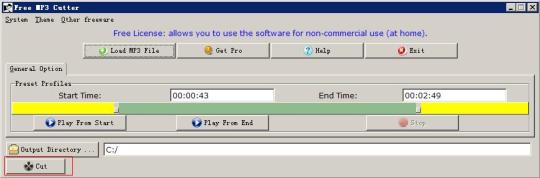 Free MP3 Cutter Freeware is the best software for cut MPEG-1 Audio Layer 3 (MP3) file. It is very easy to use without any special setting, only a few clicks complete the task of MP3 file cut. It is made for the beginner as well as having advanced functions for the professional user. You can play the mp3 file from the start time or the end time that you set. Cut your MP3 files and keep all MP3 frames after setting start time and end time by click mouse button and drag mouse. Cut your MP3 file without re-encoding it, so fast beyond your imagination.