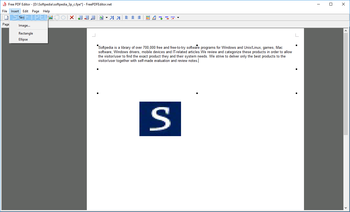 How to edit - the "Insert Text" is used to insert Text content to PDF documents, click the toolbar button "Insert Text" (or select it from Main Menu), one input box will show in the document, you can drop it to any position, and resize it to any size, then you can type or paste text content in it. Program provide some useful text format tools, you can change the PDF text fonts, color, text size, text style. Using "Insert Image", you can insert your photos and images into PDF documents, program support most popular image formats, such as: BMP, JPG/JPEG, GIF, PNG, ICO and more. You can scale and move this image by drop the arrow along the image. You can use "Insert Rectangle" and "Insert Ellipse" to add some shapes in your PDF files, you can change the border size, border color, border style and fill color, if you choice the white color, it will be transparent (no fill color).