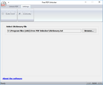 Otherwise, go to the settings tab and choose the decryption mode between dictionary and brute force. In case of dictionary, you can load the existing text document from Free PDF Unlocker's installed directory to try all words, or create a new text file from scratch and enter what you think could be the correct password (one word per line).