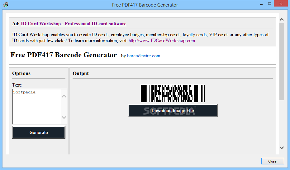 One of them is Free PDF417 Barcode Generator, a lightweight program specially designed to create and export PDF417 barcodes. It is very easy to use, but it features an outdated interface and requires you to be connected to the Internet at all times.