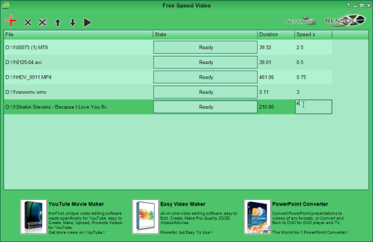 Free Speed Video provides a simple solution of speed up or speed down videos, with it we can free to speed up videos or speed down videos, and easy to get video fast forward effect or video slow motion effect. its 100% free and supports all 32bit and 64bit windows.