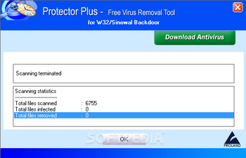 Free Virus Removal Tool for W32/Sinowal Backdoor Screenshots