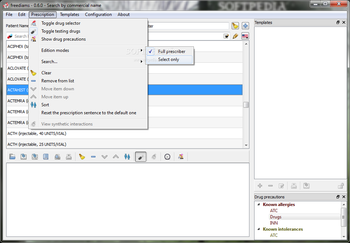 FreeDiams is a medical prescription software. It can be used alone to prescribe and / or test drug interactions within a prescription. It can be linked to any application thanks to its command line parameters. FreeDiams can manage multiple drugs databases. It features access to the majority of pharmaceutical drugs, ability to add your own drugs database, databases are compatible with the ATC classification, assisted search of drugs by their name, their molecular composition or INN, prescriptions can be made with trade names or INN for the majority of therapeutic, and backup and restore your personal data automatically.