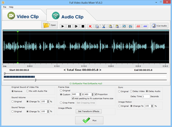 Full Video Audio Mixer is a video and audio editor that allows users to merge an audio track into an existing video file, as well as to mix and cut media streams in an intuitive manner.