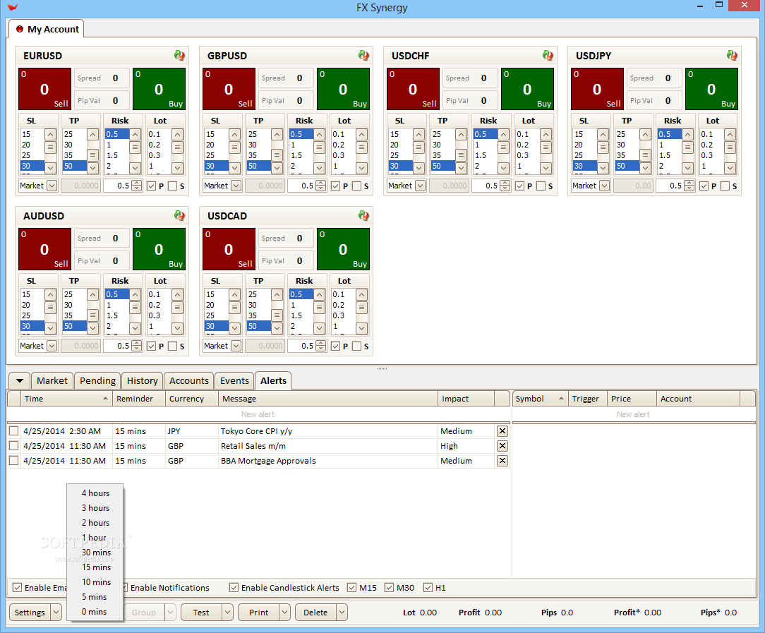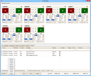 Import forex news and get notified in advance instead of forgetting all about them. You can also create your own alerts. Enable candle-stick alerts and get notified when new candle-stikls are drawn on the charts.