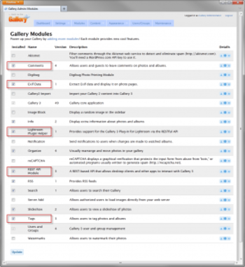 With Gallery Export, export and publish your photos. The Gallery software (also known as Gallery3, G3, or Menalto Gallery) is an open source web based photo album organizer. Features include supports publish services in Lightroom 3 and 4, supports export operations in Lightroom 2, 3, and 4, multiple hosting servers and multiple accounts, unlimited nesting album structures, custom sorting in published albums, allows you to import the album structure from the hosting environment into your Lightroom catalog, allows you to associate existing photos with photos in your Lightroom catalog, and supports photo keywords (tags) and comments.