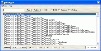 gbNavigate is a very easy-to-use way to search for a folder. gbNavigate features include opening selected folders in a Window, in Explorer or in a DOS window Multiple drives may be include in the search.