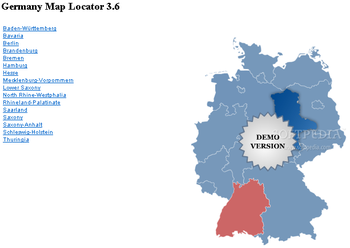 Germany Map Locator will offer you the possibility to add a Flash map to your website.System requirementsCeleron 1400 MHz