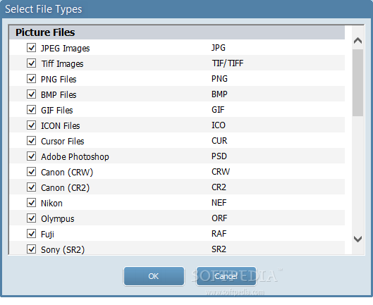 Each category comes with a more detailed selection. For example, some of the supported image formats are JPG, TIFF, PNG, PSD, CRW, SR2, ICO or CUR, while for movies, you can choose AVI, MOV, WMV, MPG, MP4, RM or 3GP. When running the scan operation, a progress bar is shown along with the record counter. It's possible to pause and stop the process at any given time.