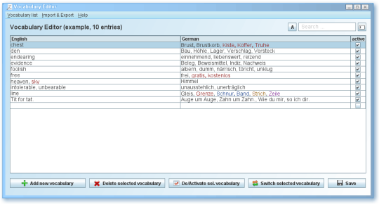 You can download GnuVocabTrain which is 849.05 KB in size and belongs to the software category Home and Education. GnuVocabTrain was released on 2013-07-06 and last updated on our database on 2017-04-26 and is currently at version 4.1.