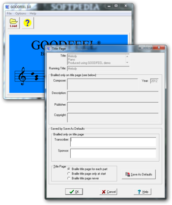 GOODFEEL automatically converts several kinds of music files to Braille - the same files used to print the score for sighted players. To prepare and transcribe these files with GOODFEEL, you do not need to know how to read braille music; however, you should know how to read print music notation and how to use Windows-based software.System requirements128 megabytes of RAM