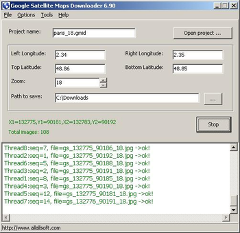 Google Satellite Maps Downloader is a cute tool that can automatically download Google Maps satellite tile images and then combine them into one big map image. It supports multithreads, so the download speed is very fast. And it is very easy to use. All downloaded small images are saved on the disk. You can combine them after downloading or later. Isn't it very cool that you make your city's high precision satellite map by yourself?!