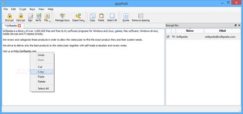 The key file manager enables you to import keys from ASC, TXT, or GPG file format, copy the information from clipboard, and export the selected keys to ASC or TXT file format.