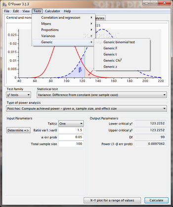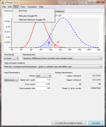 G*Power offers you the possibility to generate a bi-dimensional plot for a user-defined range of values. The distribution plot can be copied to clipboard or saved for later reference. In addition to this, you can view, save or print a log of every analysis you made.
