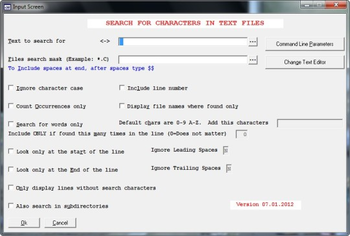 An intuitive and powerful Windows 64 bit replacement for the GREP DOS text search utility. It works from an user Window interface or from the CMD line. This demo version can be executed 15 times. It includes an uninstall program.