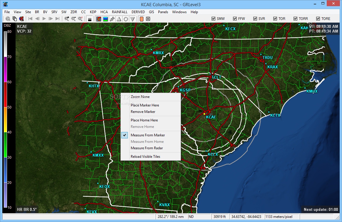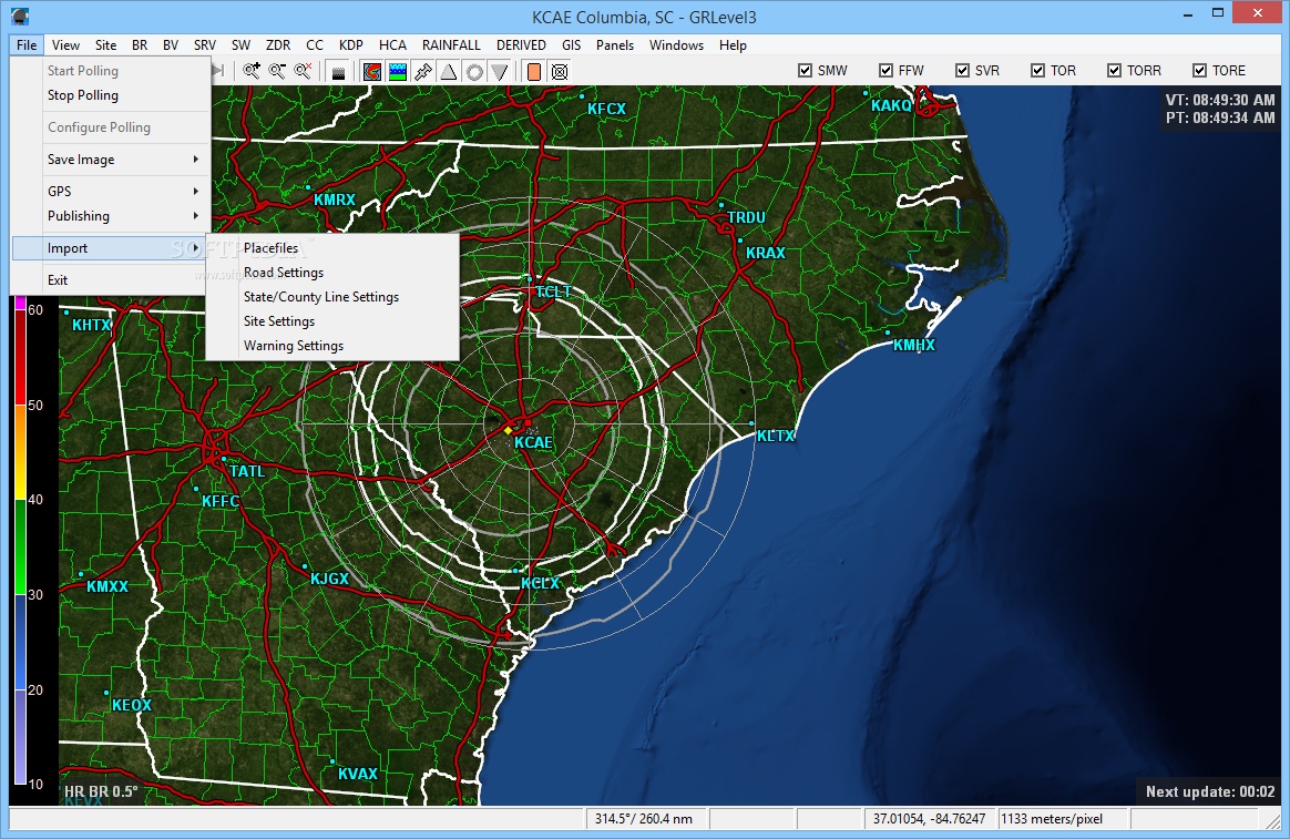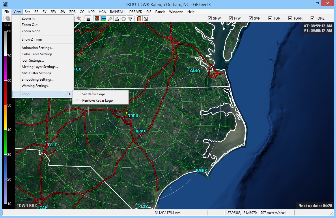 GRLevel3 can help you find out any temperature shifts or rain forecasts for any zone on the globe. Additionally, the application displays roads and city limits, useful for when you want to travel somewhere, but you do not know what weather conditions you will be facing on the road.