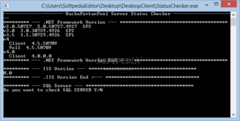 HackaFortanFoni Sever Status Checker is a command prompt application that fetches information about IIS and SQLÂ Servers (if installed), as well as about the NET Framework version present on your system.