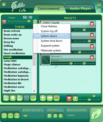 Representing the lighter edition of Halotea, Halotea Lite is an application that can generate atmospheric sounds, such as crackling fire, jungle noise, rain, and waves. It's useful for people who have trouble sleeping without listening to smoothing, constant sounds. However, it can also be used for studying, working, meditating or performing other activities which require concentration.