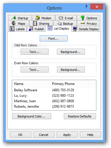 Last but not least, you can publish the address book on the web by specifying the FTP server, encrypt the address book by setting up passwords or protect private addresses with passwords, enable the automatic backup mode, print the information, and customize the list display by changing the font, font style, size, and text and background colors.