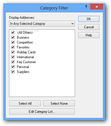 What’s more, you can enter custom text messages, assign a picture (e.g. BMP, DIB, GIF, ICO, PNG, JPG), group contacts in different categories (e.g. Business, Favorites, Competition, International, Suppliers), as well as enter information about your business (job title, company, department, office), personal data (e.g. nickname, birthday), and other custom fields.