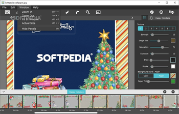 You cannot miss the multitude of presets Happy Holidaze comes with, all displayed on the lower side of the interface. Combining 'Merry Christmas' or 'Happy holidays' messages with images of snowmen, filled stockings, presents, candles, Santa and his reindeer, and, of course, Christmas trees, these presets provide great-looking Christmas-themed frames that can be applied on top of your photos with a click.