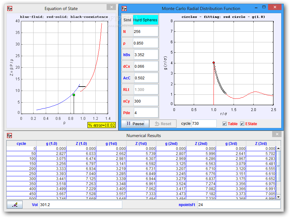 Hard Spheres Monte Carlo Model is a Java-based software that allows you to analyze the simulation results via the radial distribution functions from which the equation of state is estimated.System requirementsJava