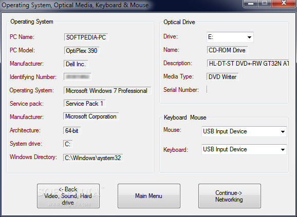 Last but not least, the utility provides details about the operating system (e.g. name, model, manufacturer, operating system, ID), optical drive (drive, name, description, media type, serial number), mouse, and keyboard.
