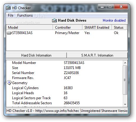 HD Checker uses only the Win32 API.Limitations in the unregistered versionNag screen