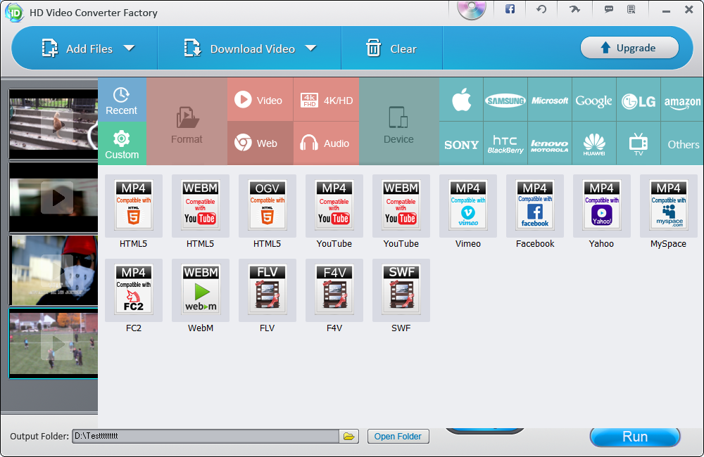 Totally free, safe and easy to use high quality video converter and high speed HD video converter. No adware, no embedded software, no time limit and no watermark on your output file. WonderFox Free HD Video Converter supports Intel Quick Sync, AMD (ATI), CUDA, Multi-CPU and Hyper Threading.WonderFox Free HD Video Converter offers the best free HD video conversion solution, improve video quality and creates perfect balance between quality and file size. It completely avoids the disproportionate aspect ratio and dull color of the output images, and is able to make the output video shown on your portable gadgets in full screen. In addition, you can simply downscale the original video by dragging the customizable compression level bar (to convert video to HD quality as well as to reduce video size.) . Want to have more advanced HD lossless video and audio conversion experience, HD Video Converter Factory Pro free download full version here.Convert video to 200+ video audio formats and devices including high-definition formats. That means, you can also use it as an MP4 to HD video converter. This free HD converter supports up to 720P HD video conversion for export, support up to 8k HD video for import. HD video converter free download now to do it yourself. Supported video formats: HD MP4, HD MKV, HD AVI, HD MOV, HD MPG, etc and common formats like MKV, MP4, AVI, MPG, H264, M4V, MTS, M2TS, FLV, SWF, WEBM, TOD, VOB and more, like MP4 to DivX, MP4 to WebM, MP4 to WMV Free. WonderFox Free HD Video Converter Factory also presets ideal parameters for a wide range of devices: iPhone 7(Plus), iPad Pro, iPad Air, iPad mini, Apple TV, Samsung GALAXY series, Android Smart, Curved 8K/4K TV, UHD TV, Surface, HUAWEI, BlackBerry, PS4, Xbox One, Projector 4K/FHD/720P and more.