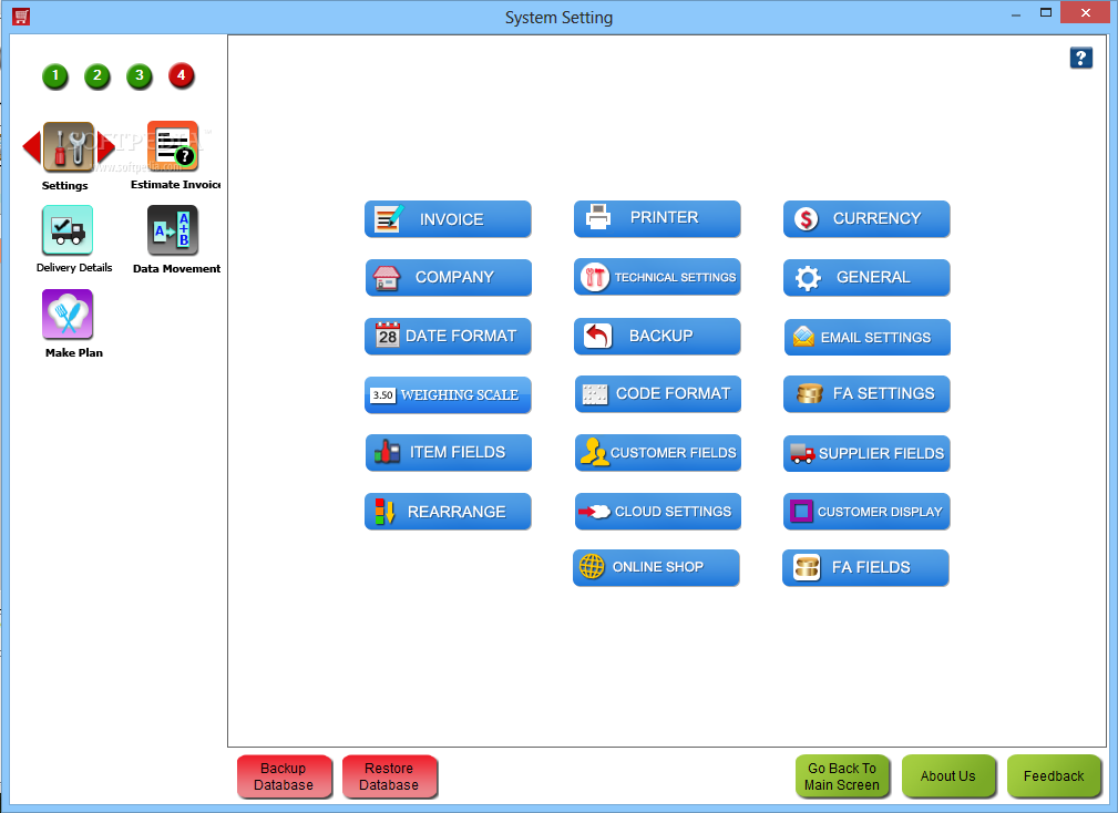 The program first requires you to input all your company's information, in order to be able to generate invoices. Afterward, you can use the main screen as a selling point, adding items that clients are buying and generate price estimates, apply 'Spot Discounts', receive payments or add customers.