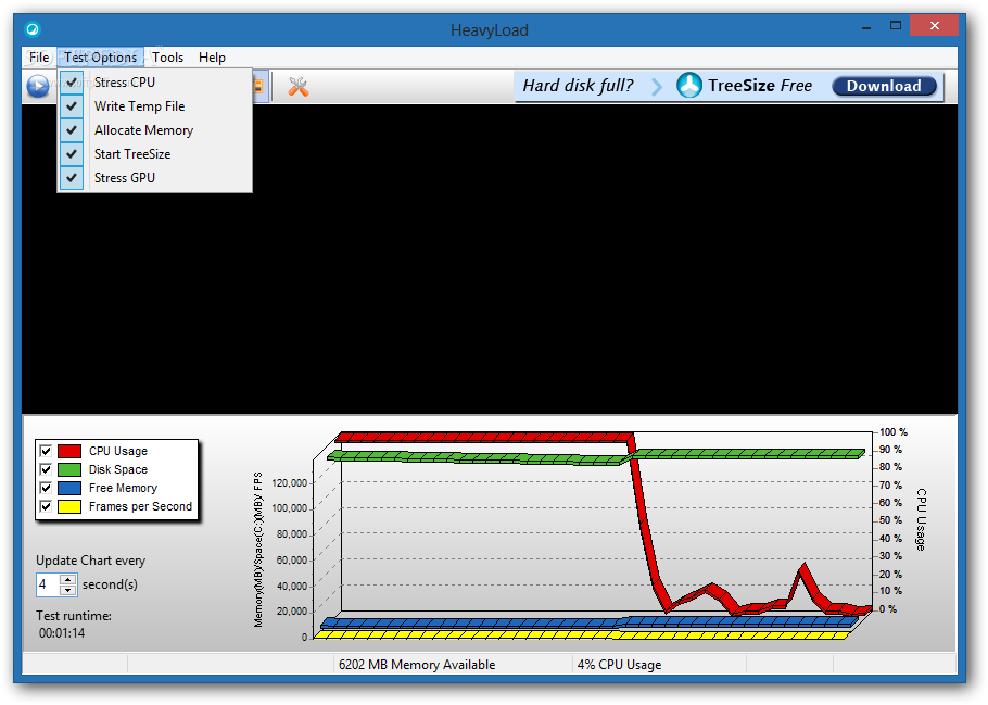 As its name implies, Heavyload is a system stress tool that enables you to view how the computer behaves when faced with scarce memory, low disk space and high GPU or CPU usage. It comes in handy for testing the reliability of database servers and the performance of any PC.