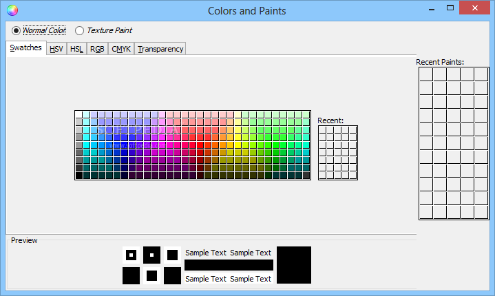 There are numerous types of spectrums, that you can use when painting, according to which kind of colors you wish to use. You can choose from the classic RGB scheme to CMYK or HSV color collections.