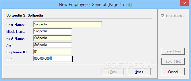 Complete employee personal information.