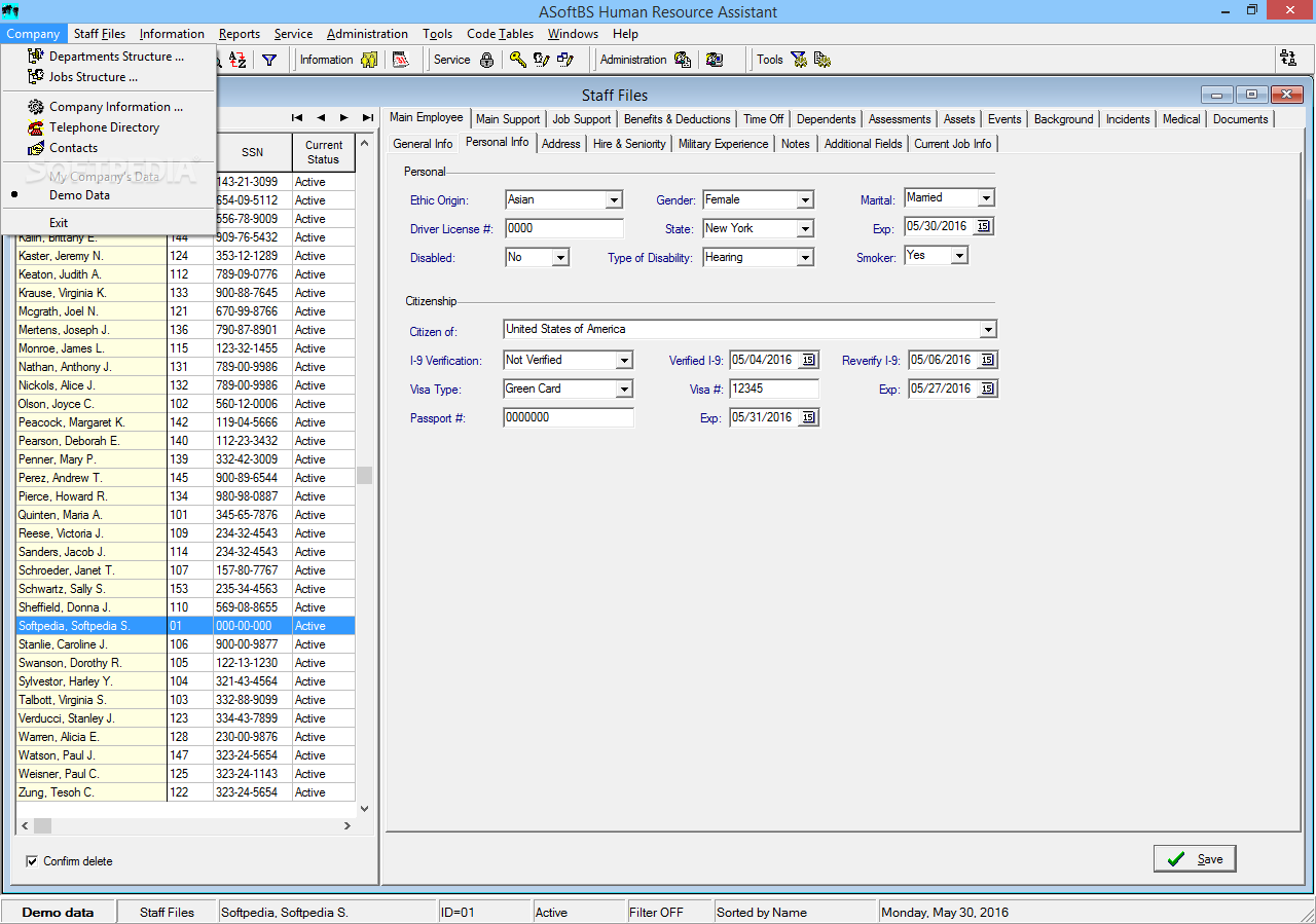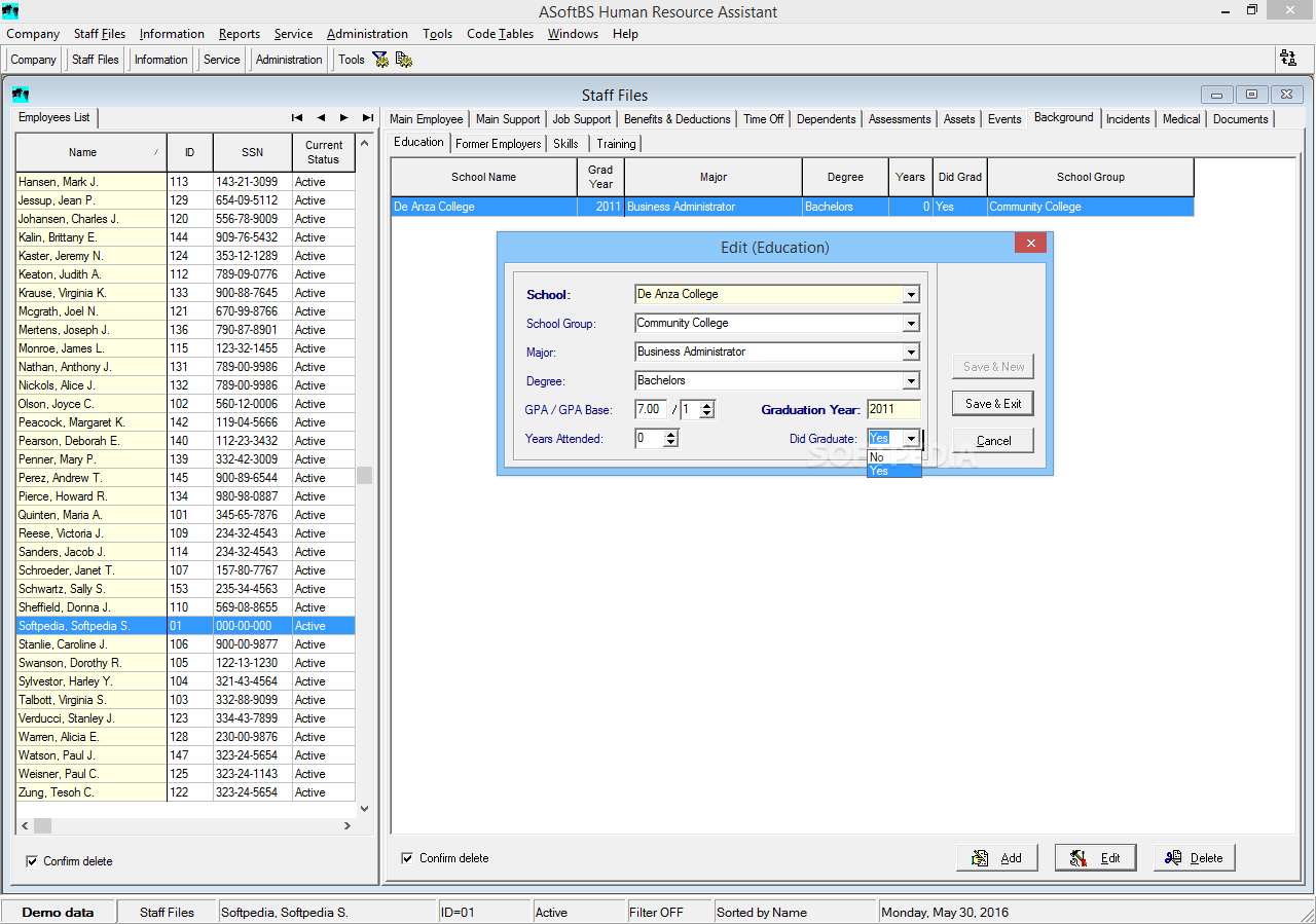 HR Assistant Lite is a demo software by ASoft Business Solutions, Inc and works on Windows 10, Windows 8.1, Windows 8, Windows 7, Windows XP, Windows 2000, Windows 2003, Windows 2008, Windows Vista, Windows 2012.