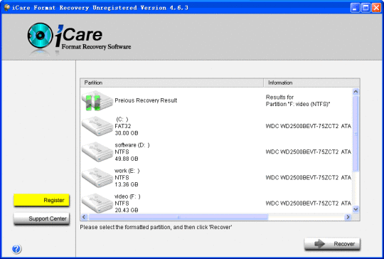 iCare Format Recovery is useful when you accidentally formatted hard drive, lost photos from digital camera SD card, lost files from memory card, flash card, pen drive, removable hard drive. iCare Format Recovery can help you recover formatted partition to get files back. Formatted drive recovery whether high levels formatting or regular formatting are all supported. When your drive whether hard drive, removable hard drive, SD card, pen drive, USB drives are shown Raw file system often called raw drive, iCare Format Recovery can recover files what are raw and inaccessible.