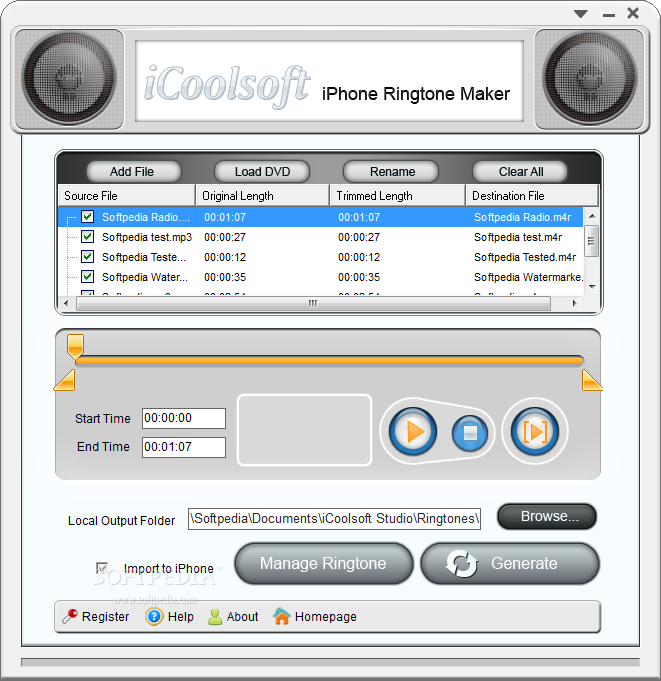 This pack allows you to convert any format of audio files to M4R format which can be used as your iPhone ringtone. Besides, you can also extract audio tracks from videos, even DVDs, and then convert them to M4R format for being used as your iPhone ringtone.