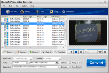 With this great iCoolsoft iPhone Software Pack, you can convert any video/DVD to iPhone compatible MPEG-4, H.264/MPEG-4 AVC, MOV, M4V formats with high quality and fast speed.