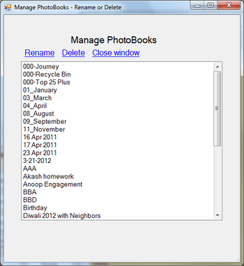 Organize the thousands of photos on your PC into 1 dashboard grid 2-dimensional display by year and event. Add captions to each photo easily that is attached to the photo and shows with the photo on a slideshow or on a PhotoBook. Create new PhotoBooks and copy photos into it and print as a book using any browser. Specify a top level folder on your PC and in a few minutes, all your photos within all sub-folders will be organized into the Photo Dashboard. Program works on copies of your photos and leaves all original photos on your PC untouched.