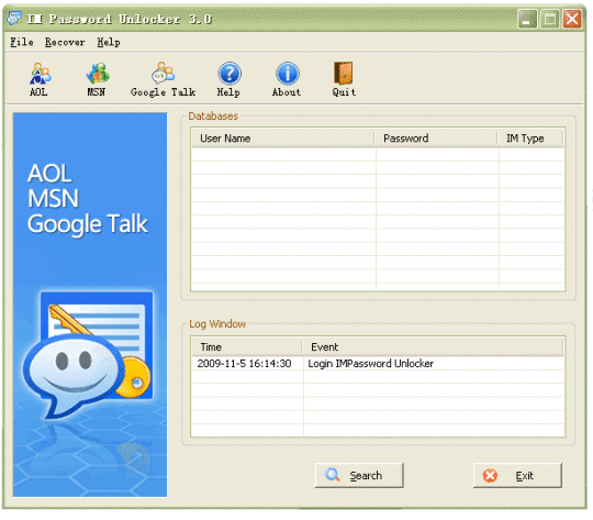 IM Password Unlocker is the Instant Messenger password recovery tool that instantly recovers and decrypts the forgotten or lost passwords to the most popular Instant Messengers for all versions. It can not only uncover the unique login password but also recover multiple login passwords stored on the local computer. IM Password Unlocker works with accurate when "Remember my password" checkbox is ticked in Windows Live Messenger / MSN messenger, Google Talk (GTalk), and AOL Instant Messenger (AIM).