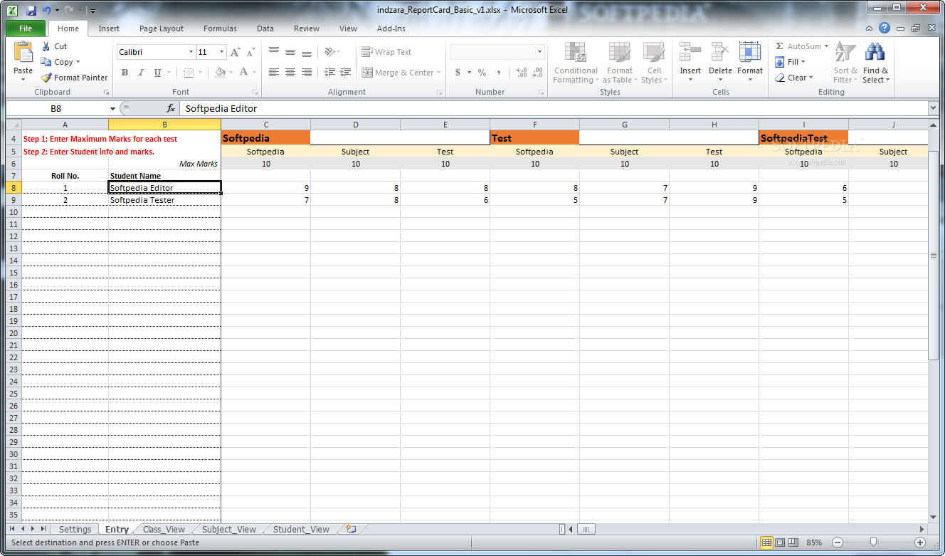 You can use the template to keep track of the class marks and to quickly view and print the individual information about a certain student.System requirementsMicrosoft Excel